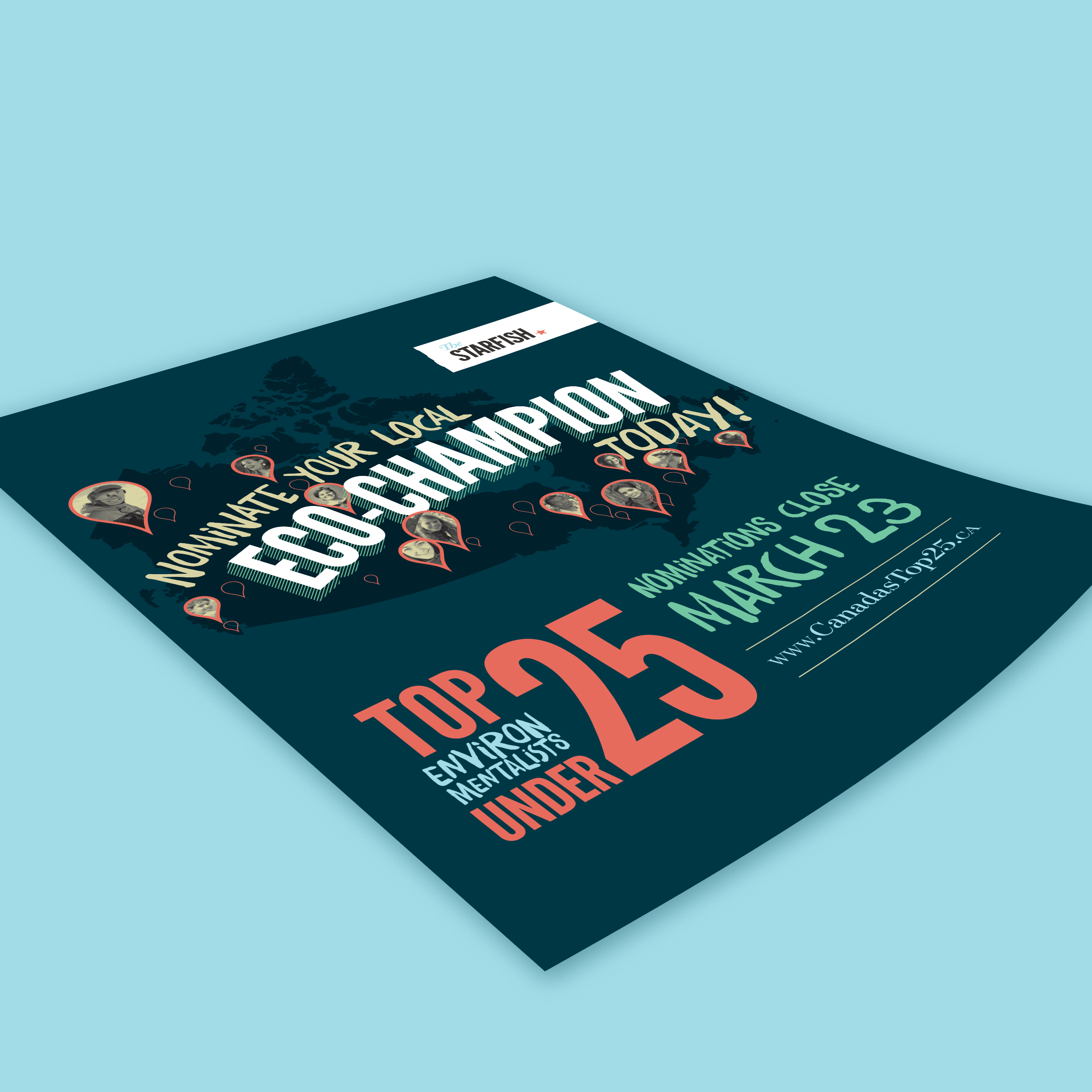 Since 2011, The Starfish Canada has hosted its annual countdown of environmental do-gooders titled “Top 25 Environmentalists Under 25”. The purpose of this program is to showcase the achievements of Canada’s youth and also inspire other young Canadians to take part in the betterment of the world around us. Each year, this national not-for-profit relies on social media graphics and website advertisements to collect nominations from coast to coast. The final 25 environmentalists are published in a printed magazine and on The Starfish Canada website.
